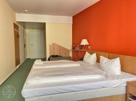 Geprobeerd een Airbnb-adres te regelen in Lutherstadt Wittenberg maar we kregen geen reactie van de host. Er was verder niks te vinden met een wasmachine, zelfs niet in een omtrek van vijftig kilometer. Daarom maar een hotel geboekt. Gelukkig hebben we de Scrubba waszak bij ons, kunnen we alsnog de was doen want een wasserette is er ook niet in deze stad. Hebben we die waszak tenminste niet voor niets meegenomen. Een reiswaterkoker/dompelaar was ook fijn geweest, maar die hebben we niet bij ons. Dit is weer een hotel zonder waterkoker of koffiemachine op de kamer.