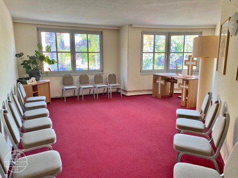 In de hotelkamer moesten we eerst op zoek naar waar die adembenemende stank van een ‘luchtverfrisser’ vandaan kwam. Niet één maar twee van die vieze parfumverspreiders vonden we. We moesten er vanaf, want mijn longen kunnen daar niet tegen. We mieterden die dingen achter een kastje van de bidruimte en zetten de ramen open van onze hotelkamer. Maar iedere keer als we de etage opkwamen, nog ver verwijderd van die stilteruimte, kwam de stank ons al tegemoet.