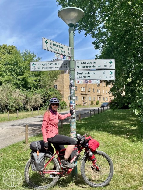 ‘Mitte’, het centrum van Berlijn, werd al aangegeven op de borden. Het bord dat de grens met Berlijn markeert hadden we helaas gemist. Het binnenrijden van Berlijn gaat over een lange kaarsrechte weg. Het was echt mooi binnenkomen. Je fietst een wereldstad binnen. Het fietspad was op heel veel plekken opgebroken maar iedere keer werd je er keurig omheen geleid.