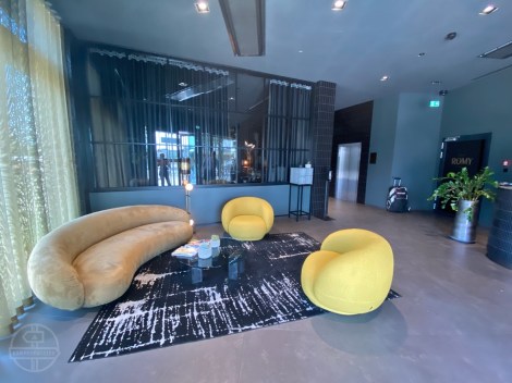Inchecken bij dit hippe (en dure) hotel was een minder prettige ervaring. Alles in het interieur van hotel Romy by Amano is zwart en de receptionisten zitten er gesoigneerd bij. Zoals vaak blijft Dave bij de fietsen en zou ik gaan inchecken omdat mijn Duits beter is dan het zijne (Dave kon vroeger op school het verschil niet zo goed horen tussen Duits en Nederlands).