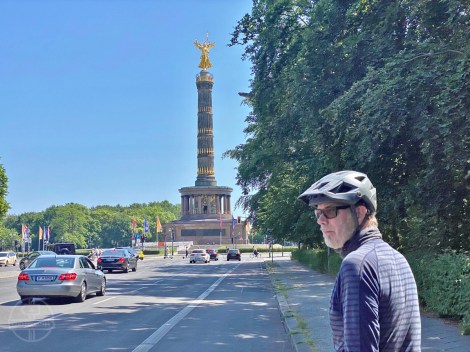 Bij Tiergarten was de zesbaans ‘Strasse den 17. Juni’ naar de Brandenburger Tor speciaal voor ons afgezet, dat was een bijzondere binnenkomst. Leuk van die Berlijners. Het wemelde hier van de elektrische-stepjesrijders. Dat ‘shared mobility’ is hier echt een groot ding.
