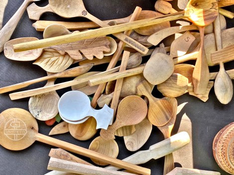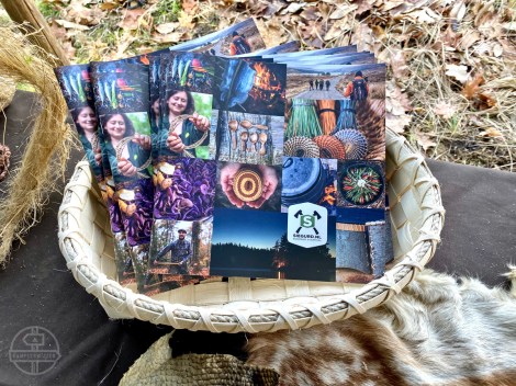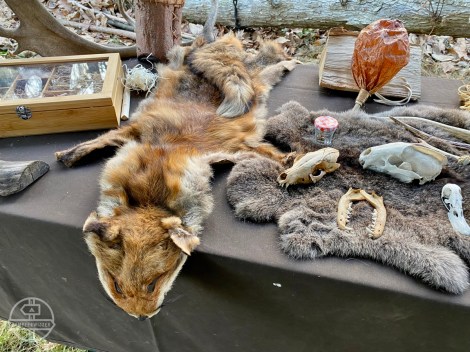 We arriveerden kort na aanvang van de infodag, wat als voordeel had dat we onze bus nog net kwijt konden op het laatste parkeerplekje. Op een terrein van Staatsbosbeheer stond een klein aantal standjes ingericht waar je met name kon kennismaken met de resultaten van de creatieve kant van buschcraft: gevlochten manden van berkenbast, touw van diverse materialen gemaakt, zelfgemaakte houten lepels, gekaarde en vervilte wol, spullen gemaakt van vissenleer. Iemand was aan het smeden in vuur.