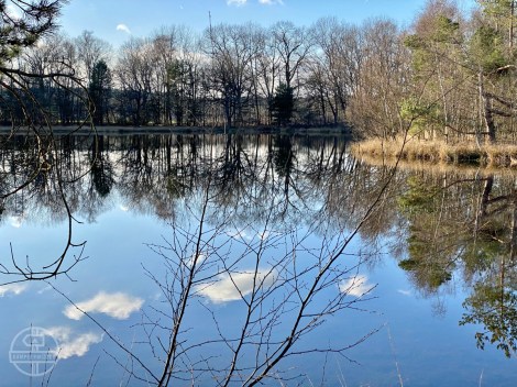 Na het rondkijken bij de stands hadden we nog behoorlijk wat tijd over tot de eerste lezing zou beginnen. We hadden achteraf beter na de lunch kunnen arriveren en dan de stands tussen de presentaties door bekeken. Het was echter een mooie zonnige winterdag en we zagen op de kaart in onze telefoon dat de Leersumsche Plassen op korte loopafstand lagen. We gingen een rondje wandelen en genoten van de werkelijk prachtige natuur daar. Doordat het windstil was zagen we een upside-downwereld weerspiegeld in het water. De lage zonnestand zorgde voor een schitterend goudgeel strijklicht.