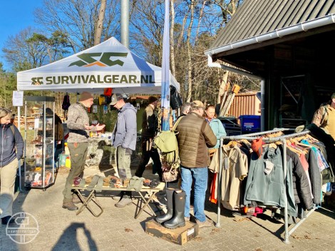 Verder was er een stand van Staatsbosbeheer en een van webshop SurvivalGear.nl met onder andere kleding van Pinewood, zo te zien een favoriet merk onder de bezoekers van deze infodag. Zogeheten tactical kleuren, van zandkleurig tot olijfgroen, overheersten. De sympathieke eigenaar van SurvivalGear houdt er overigens binnenkort mee op, hij kan het niet bolwerken tegen concurrenten die meer middelen hebben om te zorgen dat ze hoog scoren in de zoekresultaten op het web.