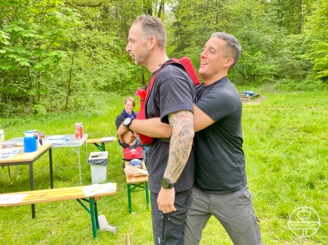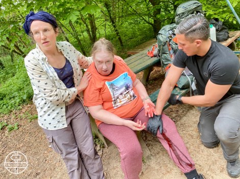 De training werd gegeven door twee EHBO’ers die vooral veel praktijkervaring hebben opgedaan in Nederland tijdens festivals en de Avondvierdaagse. Hierdoor kregen we veel voorbeelden zoals je die krijgt bij een klassieke EHBO-training via het Oranje Kruis. De cursusleiders zijn zelf geen buitensporters. Veel voorbeelden voor eerste hulp in het veld benodigden een handdoek, een krant of huishoudfolie. Dat heeft misschien iemand met een caravan bij zich, maar wij niet. Tips voor de meest handige spullen om onze EHBO-kit mee uit te breiden kregen we daarom van de medic en de Britse berggeit. Zoals een SAM-splint.
