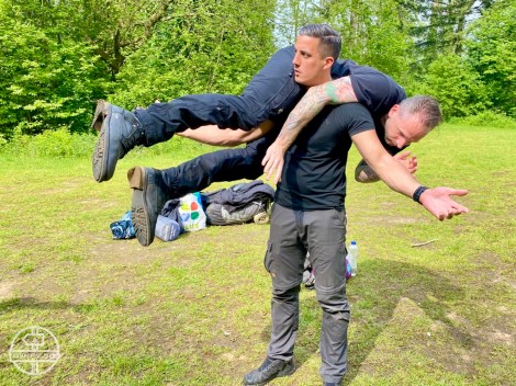 Ik had liefst wat meer leren improviseren met een brancard maken van bijvoorbeeld kleding dan te oefenen met een echte brancard. Hoe zouden we die moeten meenemen in de rugzak of fietstas? Wel was het nuttig om te leren hoe je een slachtoffer op een brancard krijgt en hoe je dan moet lopen. We kregen ook andere draagtechnieken en versleeptechnieken, zoals bijvoorbeeld de rautekgreep.