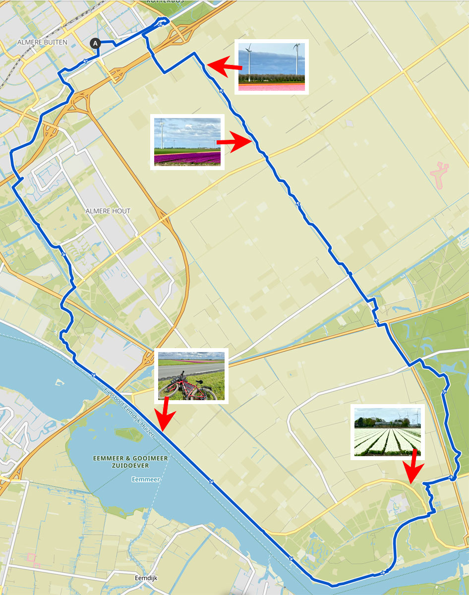 Na ruim vijftig kilometer was ik weer thuis. Dankzij de flinke tegenwind op de terugweg wist ik dat mijn conditie klaar is voor het kampeerweekend. Mocht je deze route ook willen fietsen: de afgelegde fietsroute, die goed bereikbaar is vanaf station Almere Oostvaarders, zie je op onderstaand kaartje. Parkeren kan bij de school de @rchipel of het station aan de noordzijde. Zie verder Komoot.