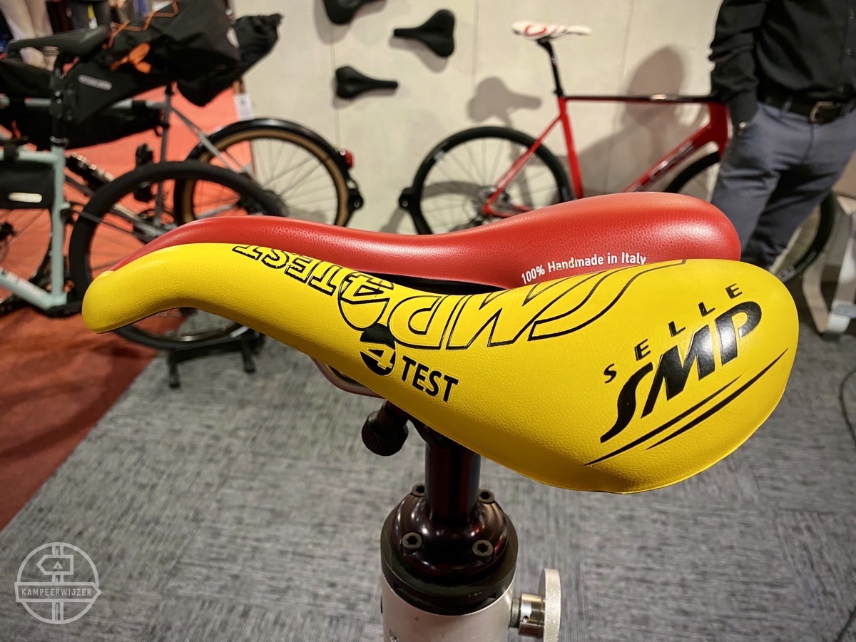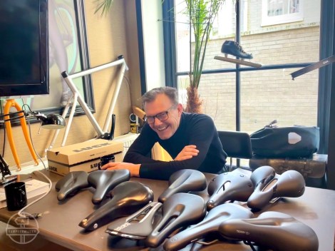 We hadden een deel van onze eigen zadels meegenomen, een collectie die over een aantal jaren is gevormd tijdens onze zoektocht naar het ideale zadel. Glorie had nog nooit zo’n collectie bij elkaar gezien. Bij klanten dan, zelf heeft hij ook een hele collectie zadels om uit te proberen, gelukkig allemaal andere dan we zelf al getest hadden.