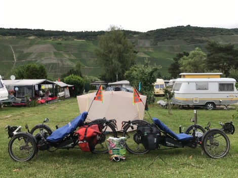 Je kan prima kamperen met een e-bike! Wij deden het in 2017 door Duitsland, anderen doen het. Naast het reisverslag hebben we er twee artikelen aan besteed op dit blog, zie de tag e-bike. Bottom line is: met twee batterijen kun je zorgeloos toeren en waar caravans zijn, kan je altijd opladen.