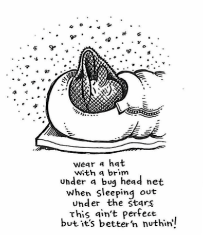 Gebruik een quilt slaapzak of top bag en niet een mummie. Omdat je al een muts en Buff bij je hebt, hoeft er geen capuchon op je slaapzak te zitten. De onderkant van je slaapzak isoleert niet, omdat je daar op ligt. Dus die kan ook weg want je mat zorgt voor isolatie van de grond. Niet iedereen houdt van de quilt, sommigen vinden het teveel tochten. De quilt wordt vaak gebruikt in combinatie met kleding. De hele quilt-trend is begonnen door Ray Jardine, die een van de eerste ultralight backpackers is. Zijn ideeën zijn na te lezen in zijn boek Trail Life.