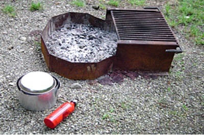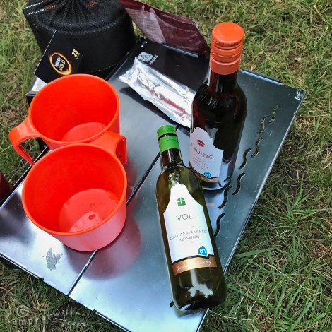 Het is handig om alles voor je outdoor keuken, zoals voedsel, eetgerei, brander, lucifers en dergelijke bij elkaar in één tas of foudraal te stoppen, zodat je niet eerst alles bij elkaar moet zoeken voordat je kunt eten of koffie zetten. Doe de afwasspullen er ook bij. Gebruik je vloeibare brandstof, dan kan je dit beter niet bij je eten bewaren.