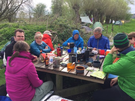 Bij de supermarkt vind je Knorr Spaghetteria in diverse smaken van carbonara tot pesto. Goedkoper dan de gevriesdroogde maaltijden bij de buitensportwinkel en ook nog lekkerder. We eten een zakje per persoon. Hier zitten gemiddeld slechts zo’n 300 calorieën in, terwijl maaltijden van Adventure Food zo’n 600 calorieën per portie leveren. Je moet dus nog zeker andere dingen erbij eten om aan de benodigde hoeveelheid calorieën te komen. Dat kan van alles zijn. Noten, een dessert, banaan, etc.