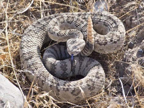 Een ratelslang kondigt zichzelf aan met zijn typerende geluid waar het zijn naam aan heeft te danken. Als de slang ratelt is het bang en gevaarlijk. De slang zijn bereik bij een aanval is maximaal zijn lichaamslengte.