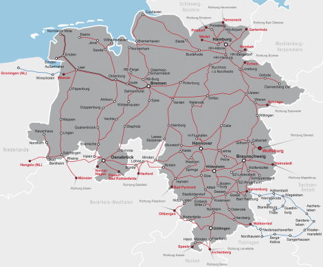 In de deelstaat Niedersachsen (Nedersaksen) kan je een voordelig dagticket voor de trein kopen voor 24 euro en 5 euro per extra persoon (groepsgrootte maximaal 5 personen; prijs 2022). Dit Niedersachsen Ticket is geldig op de volgende lijnen in lokale treinen (RE, RB, S en RS) en niet geldig in langeafstandstreinen (ICE, IC/EC):