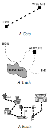 Track: een opgeslagen afgelegde vaste route. Deze wijzigt niet als je van de track afwijkt. Je gps hoeft niet de route te herberekenen. Je partner krijgt exact dezelfde route te zien op zijn/haar apparaat.