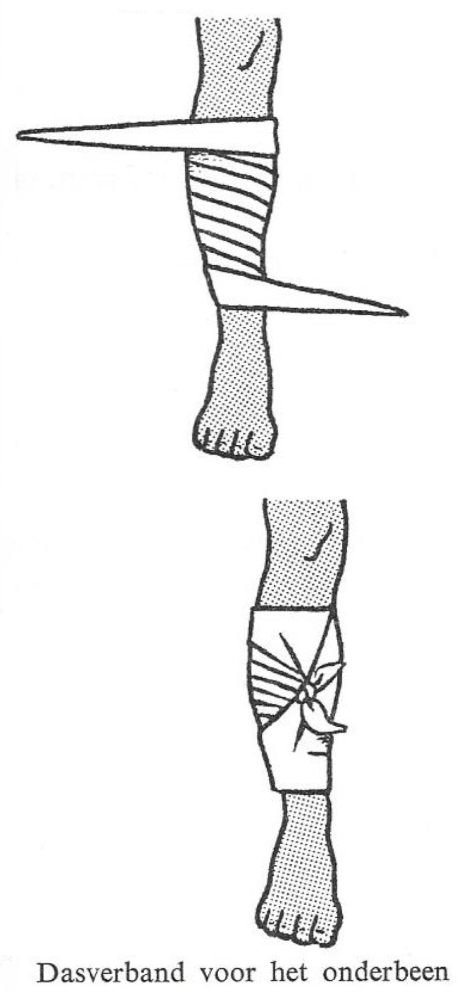 Met een driekante doek kunnen heel veel verschillende verbanden gemaakt worden. Bijvoorbeeld een schaatsverband bij een verzwikte enkel, zodat je ermee door kunt lopen.