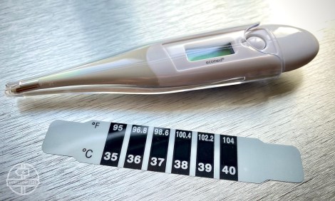 Meest compacte thermometer zijn zogeheten stripthermometers die je op je voorhoofd moet houden. Ze zijn niet bestand tegen extreme temperaturen en moeilijk af te lezen maar hebben geen batterij nodig en zijn zeer compact. Binnen 15 seconden weet je de uitslag. Op een tiende graad ga je niks aflezen. Maar je kunt wel het verschil zien tussen 40 graden of 37 graden.