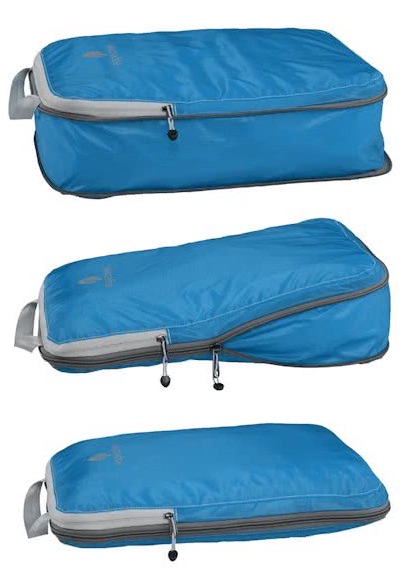 Er zijn ook diverse manieren om kleding vacuüm te zuigen waardoor de kleding minder ruimte innemen. Bijvoorbeeld in een Schnozzle Pumpsack die je bij een Exped slaapmat krijgt. Of door een extra rits dicht te trekken, zoals bij de Eagle Creek Pack It Specter compression cube.