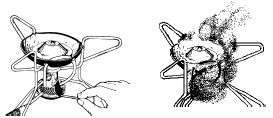 - Probeer een warme brander niet weer aan te steken voordat deze is afgekoeld: op warme onderdelen kan brandstof verdampen waardoor een gevaarlijke vuurbal kan ontstaan wanneer de brander wordt aangestoken;