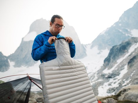 Het kan geen kwaad om je adem te gebruiken voor het opblazen van de mat. Er zitten geen materialen in die kunnen schimmelen. De Comfort Light Insulated-matten van Sea To Summit hebben een synthetische vulling en een reflecterende laag die niet knispert.