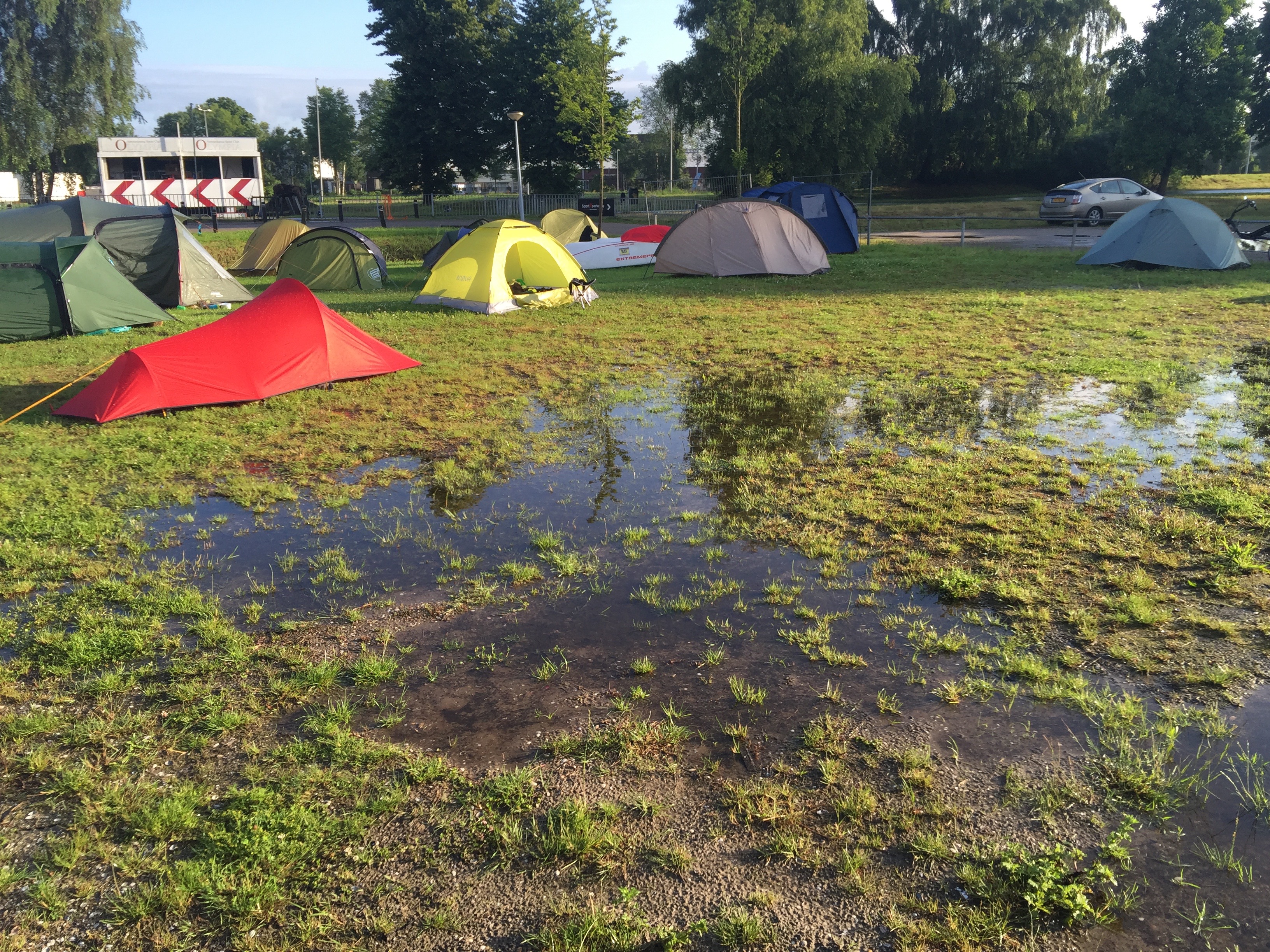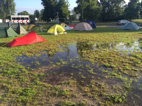 Wanneer de buitentent hoog eindigt boven de grond, houdt deze slagregens niet buiten. Regen spat dan weer op naar binnen.