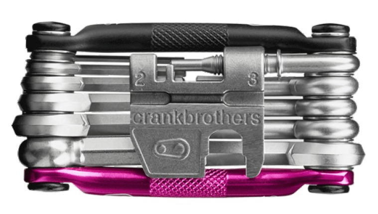 Een multitool lijkt een compacte lichte oplossing. Maar loop thuis je fiets eerst na met een set torx- en imbussleutels of een set bitjes. Schrijf alles op wat er aan je fiets zit aan maten en welke sleutels en schroefbitjes je nodig zou kunnen hebben. Zet het in een spreadsheet. Vergelijk bike multitools (pdf) vervolgens van Lezyne, Topeak, Crankbrothers, etc. en probeer de verleiding te weerstaan.