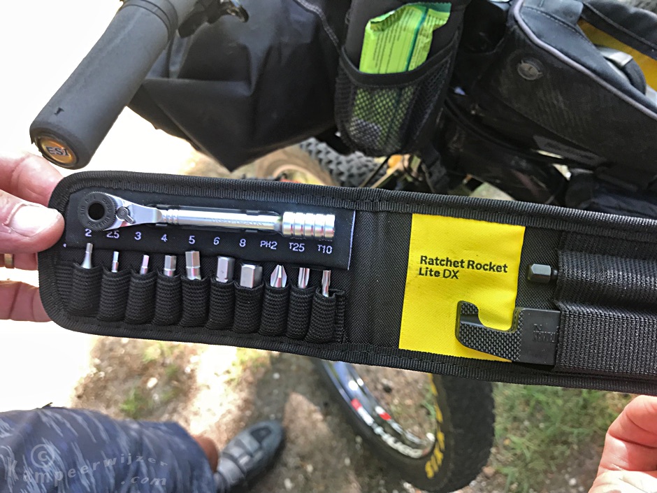 Een alternatief voor de PB BikeTool is de Ratchet Rocket Lite DX van Topeak. Ook een set met bandenlichters en 10 bitjes maar nu met een ratel. Ook hier kan je de bitjes eventueel vervangen voor precies de juiste bitjes voor jouw fiets en uitrusting.