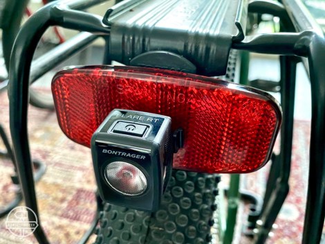 Omdat we met een bagagedrager rijden hebben we de mogelijkheid om een standaard achterlicht op AA-batterijen te monteren. Echter zijn de huis- tuin-, en keukenachterlichten op Nederlandse stadsfietsen niet erg waterdicht gebleken.