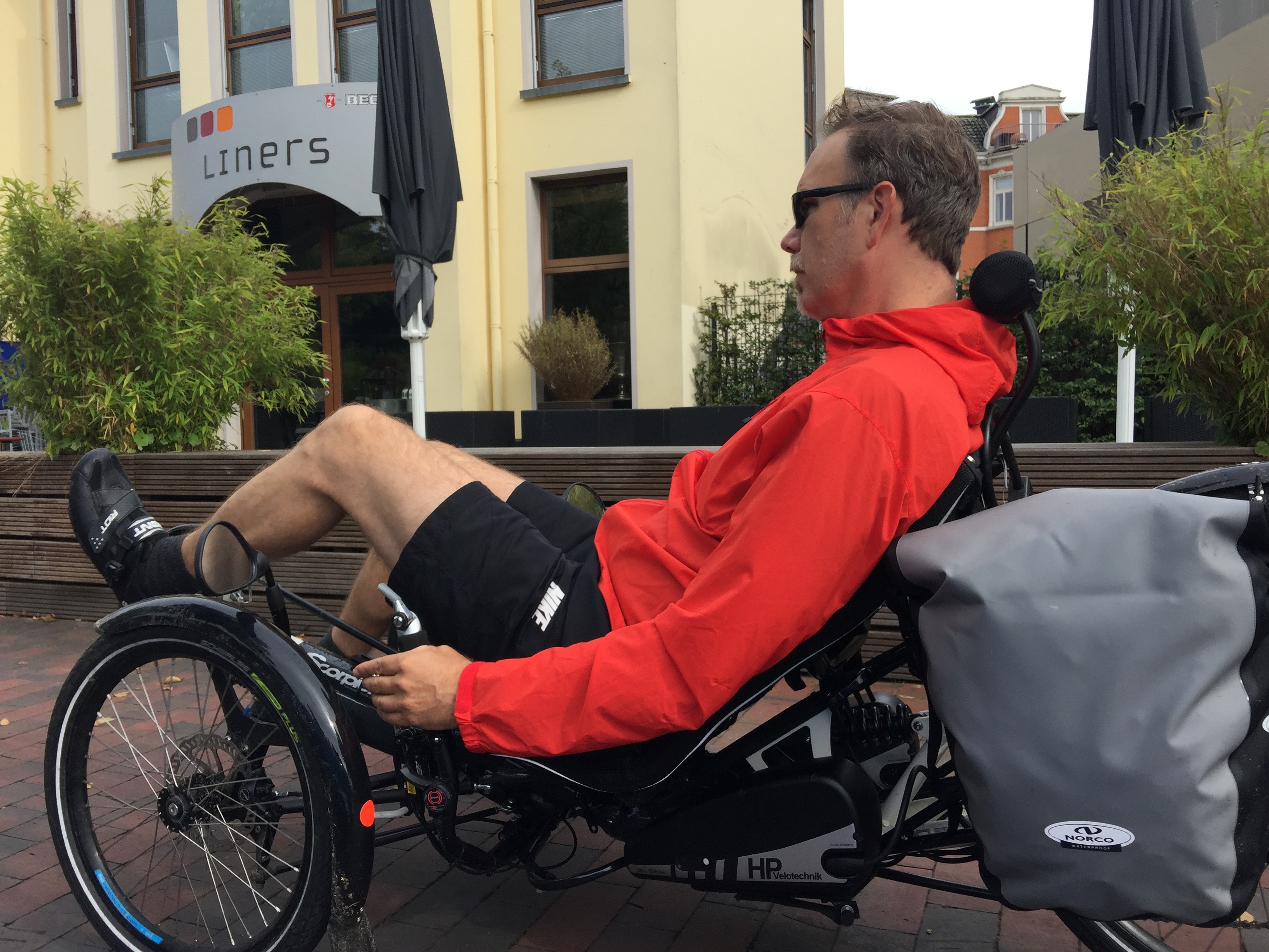Op een open fiets word je soms nat en in een gestoomlijnde ligfiets altijd.”